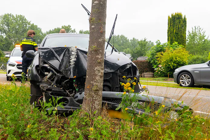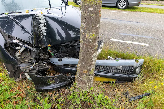 De auto liep meerdere deuken op en de voorkant kwam los te zitten. Onderdelen vielen in het gras langs de weg. De zwaar beschadigde auto is weggetakeld. Andere weggebruikers waren niet betrokken bij het ongeluk.