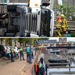 Vrachtwagen gekanteld op A16 | Man gewond na val van kade