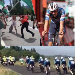 In wat vooral een vreedzame actie leek van tientallen tot honderden demonstranten, probeerden enkelingen uiteindelijk toch het snel aanstormende peloton tot stilstand te brengen, daarbij hardhandig tegengehouden…