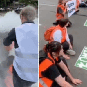 Man is er helemaal klaar mee en haalt klimaatactivisten eigenhandig weg: “Wegwezen jullie!”