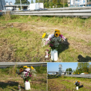 Bloemen neergelegd bij plek dodelijk ongeval waarbij vrouw snelweg over stak