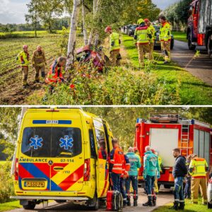 Bestuurder gewond na botsing tegen boom langs weg, traumahelikopter ingezet