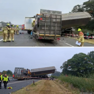 Vrachtwagen belandt op zijn kant bij ernstig verkeersongeval