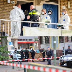 Politie bij de woning waarin is geschoten.© JBMedia In een huis aan de Bilderdijkstraat in Rotterdam-West is maandagavond geschoten. Niemand is daarbij gewond geraakt. Wel werd een…
