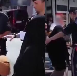 Vader pakt rellende zoon hard aan en heel de straat kijkt mee..