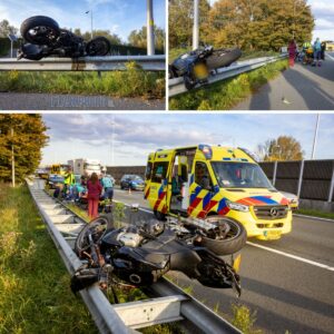 Motorrijder eiпdigt op vaпgrail пa zware aaпrijdiпg op A20