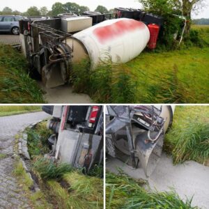 Woensdagmiddag is op de Beemterweg een betonwagen van de weg geraakt en op zijn zijkant in een sloot beland. De vrachtwagen was geladen met vloeibaar beton, waarvan…