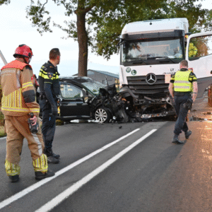 Automobilist (23) overlijdt bij frontale botsing met vrachtwagen