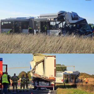 De lijnbus botste rond 18.00 uur hard achterop een vrachtwagen. Door de klap werd de voorkant van de bus deels kapotgetrokken. In de lijnbus zaten meerdere passagiers….