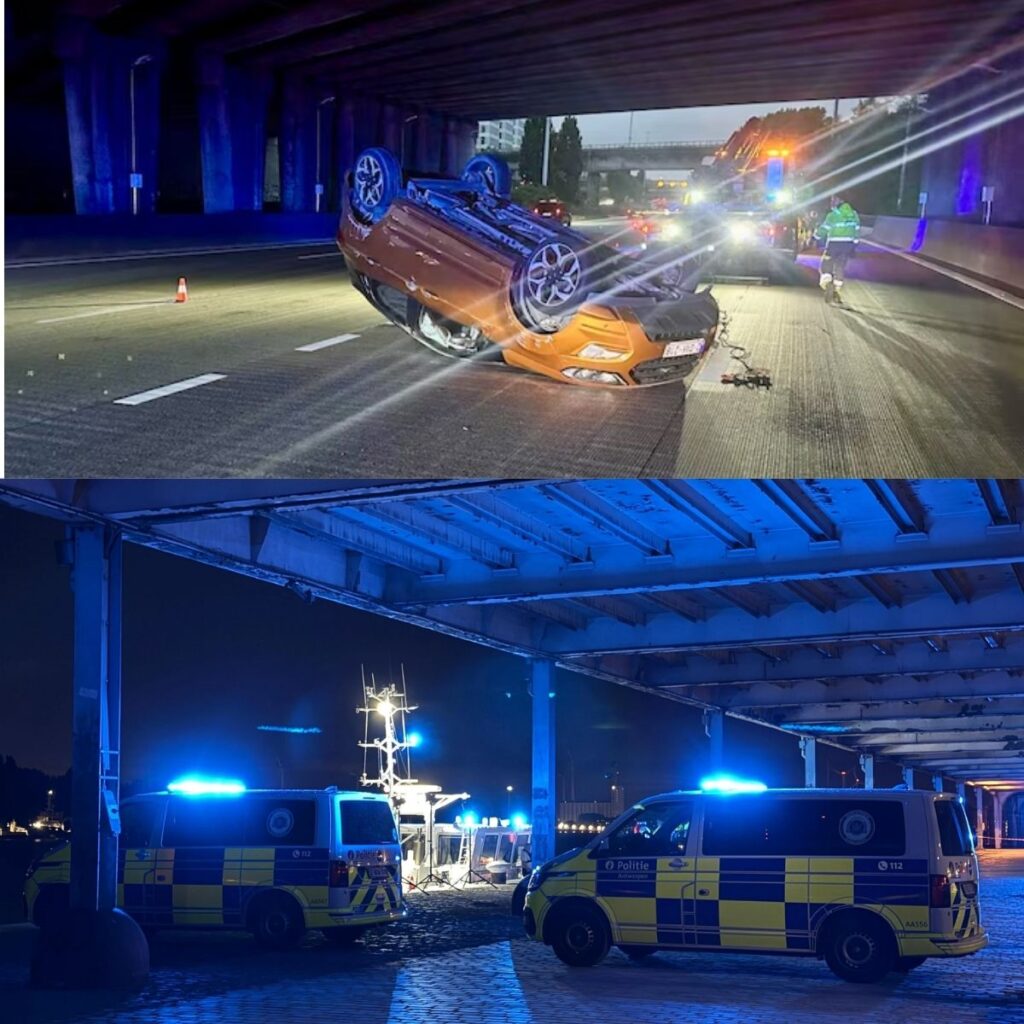 Auto belandt op zijn dak op ring rond Antwerpen: twee inzittenden raken lichtgewond