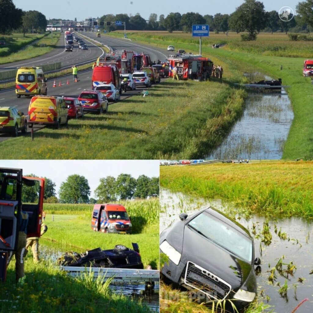 Auto met vier kinderen raakt te water langs A28, omstanders maken ‘verschil tussen leven en dood’