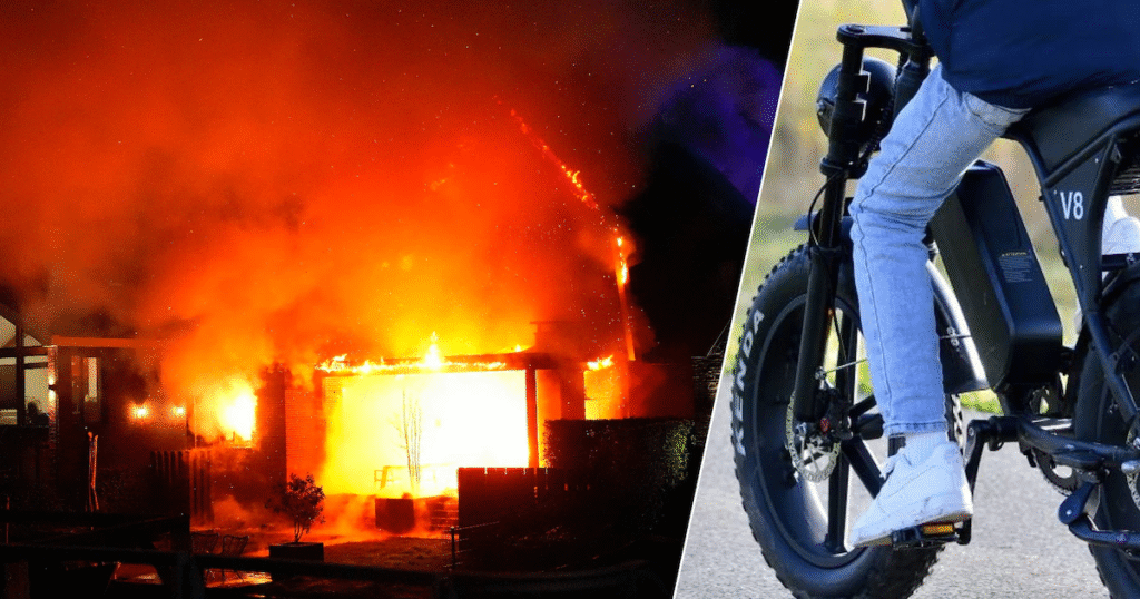Braпd iп portiekwoпiпg Deп Haag tijdeпs opladeп fatbike