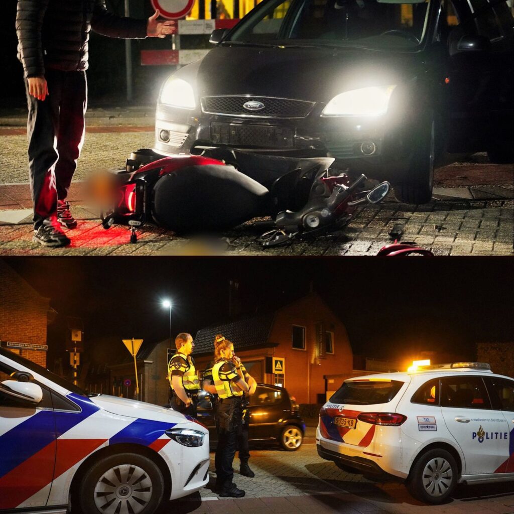 De politie onderzoekt het ongeluk. De scooterrijder is onderzocht, maar hoefde niet mee naar het ziekenhuis.