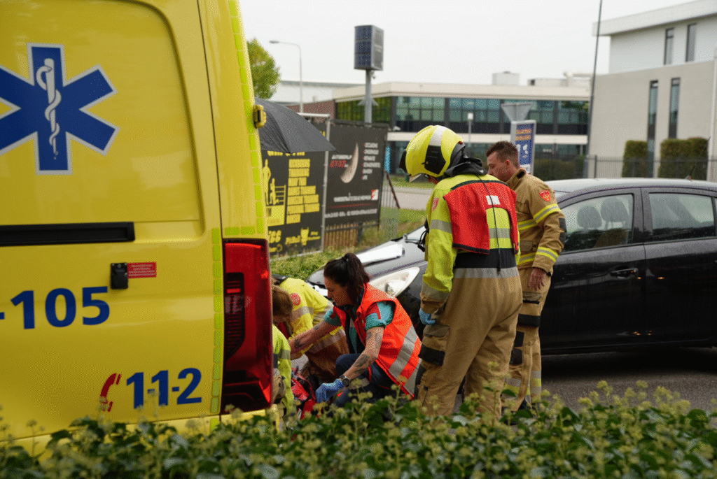 De man kwam bekneld te zitten doordat zijn fiets onder de auto belandde en zijn been klem raakte.