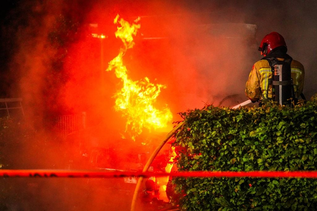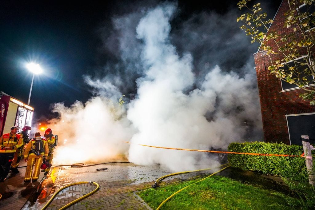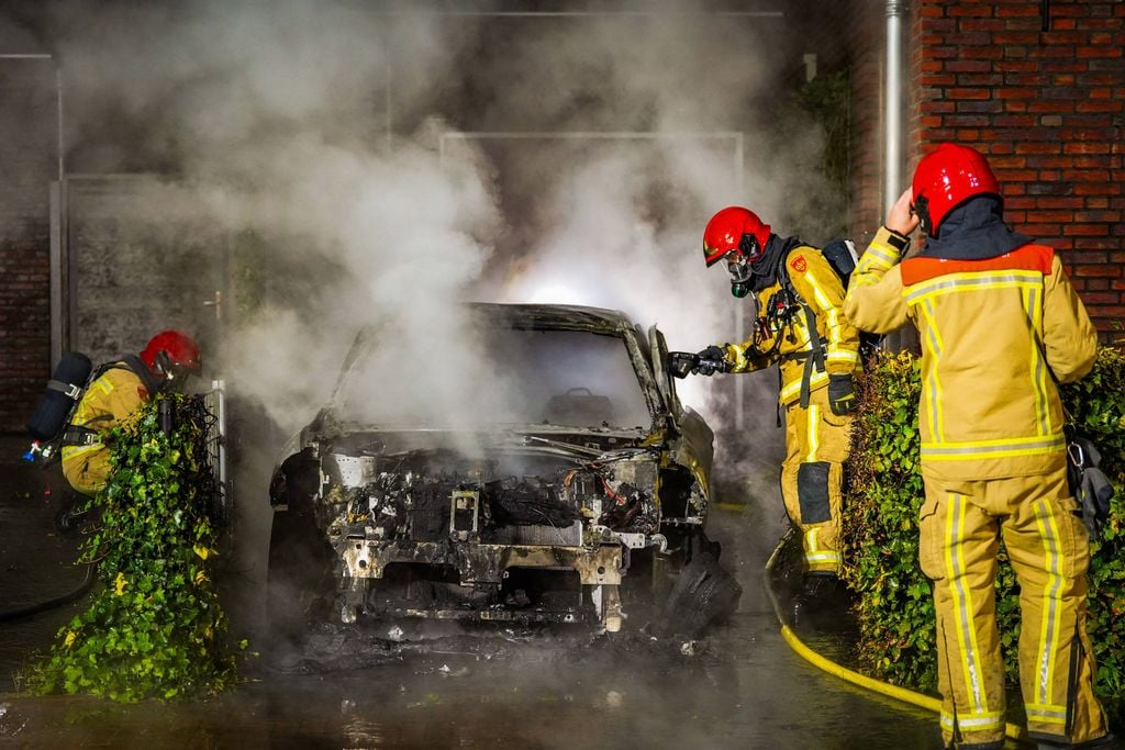 De brandweer werd in eerste instantie opgeroepen voor een woningbrand, maar toen zij ter plaatse kwamen rond kwart voor drie stond een elektrische auto in lichterlaaie op een oprit naast een huis.