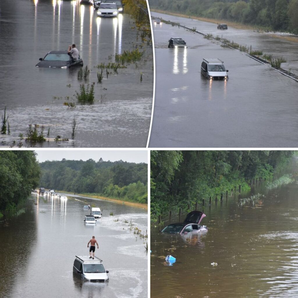 Een surrealistisch beeld, 21 juli vorig jaar. De A1 bij De Lutte stond onder water. Auto’s en zelfs vrachtwagens liepen vast. Gidion ter Steege ploegde die dag met zijn auto door het water, Ronald Morsink bekeek het drama vanaf een viaduct. Een ooggetuigenverslag van hoe het mis ging op de A1.