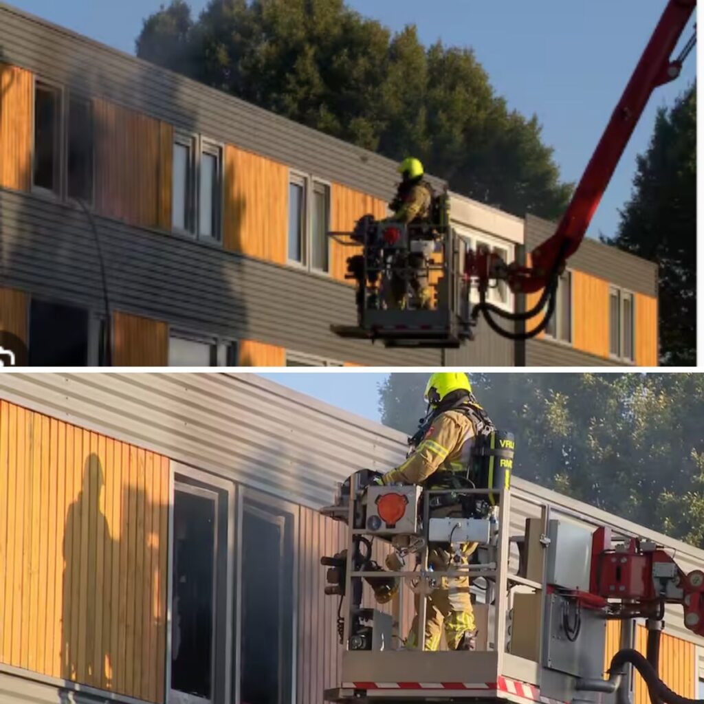 De brandweer zette een hoogwerker in om het vuur te bestrijden. Ook werden twee traumahelikopters opgeroepen. De brand is inmiddels onder controle. Het vuur is niet overgeslagen op andere panden.
