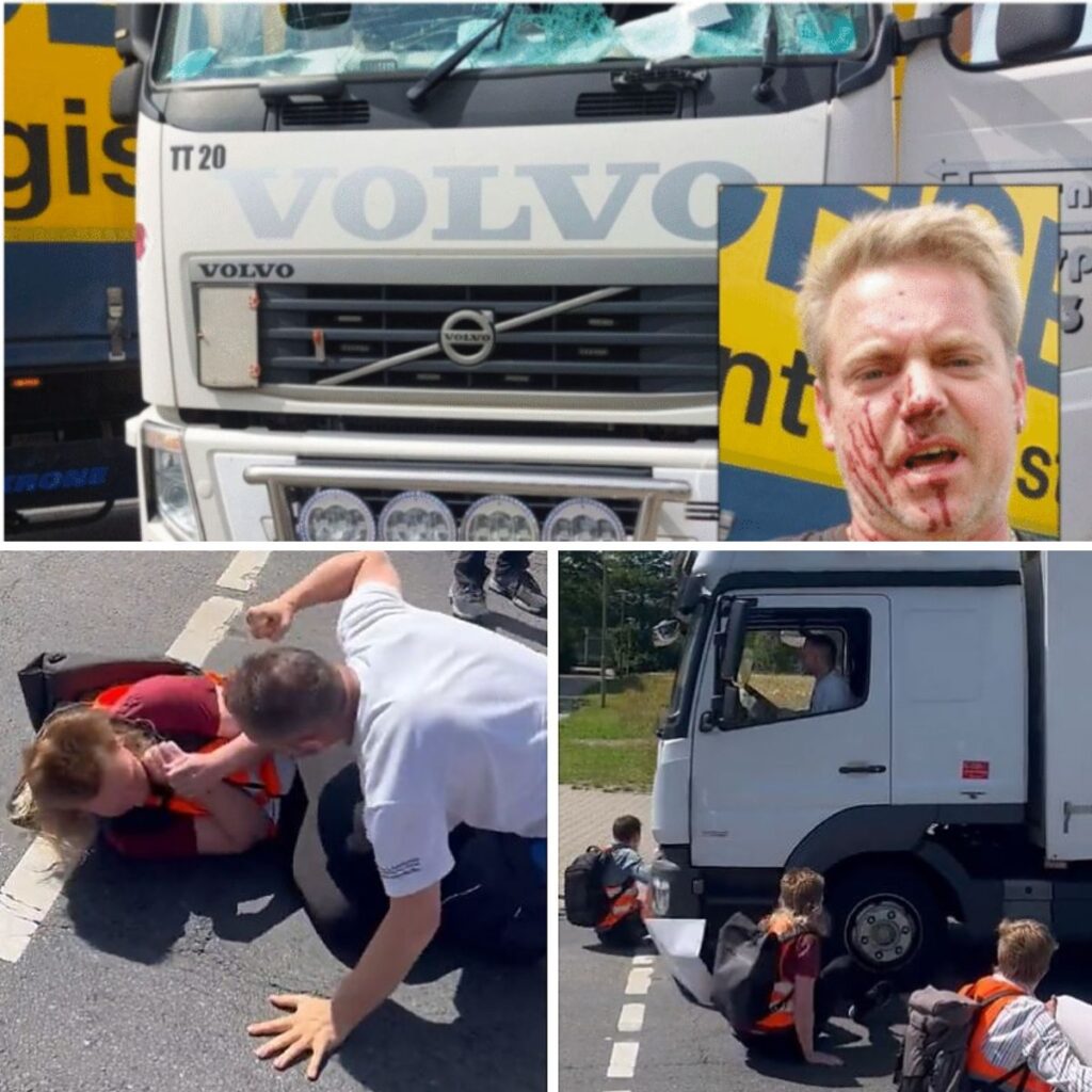 Tot verbijstering van de activisten – en van veel mensen die de video achteraf bekeken – liet de vrachtwagenchauffeur zich niet tegenhouden.