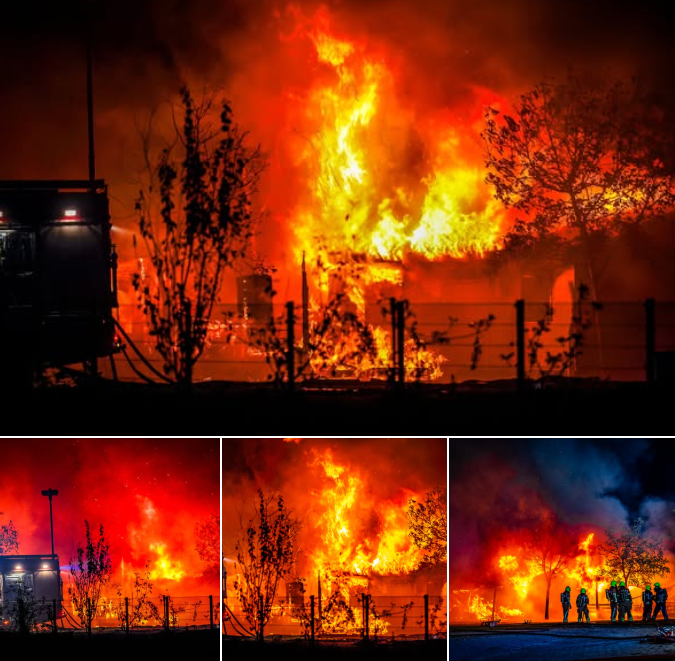 De brandweer schaalde groots op en rijdt met waterwagens af en aan om uitbreiding te v15oorkomen. De chalets die al in lichterlaaie stonden, konden niet meer worden gered.