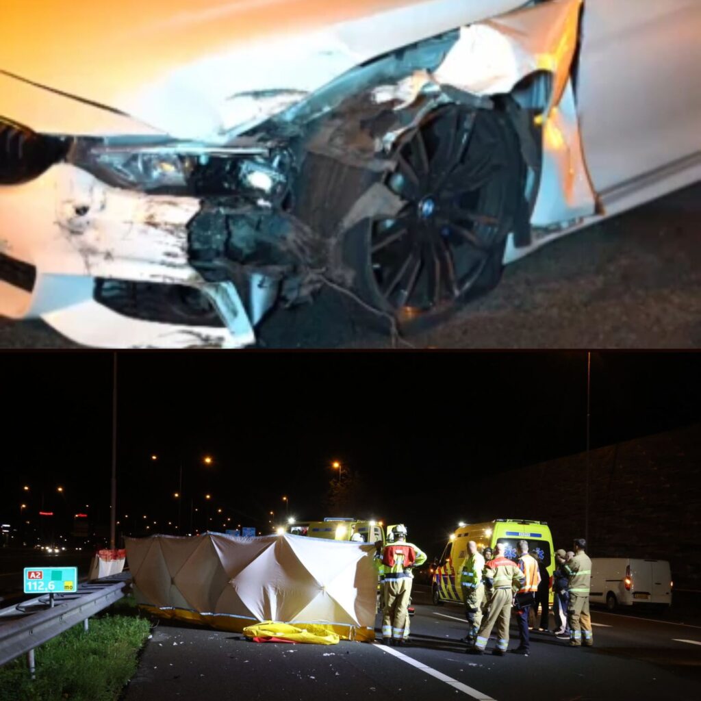 Een traumahelikopter landde op de snelweg voor hulpverlening. Op de snelweg lagen brokstukken over honderd meter verspreid.