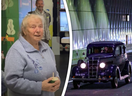 In een Oldtimer wordt Nel door de Rottemerentunnel gereden.© Rijkswaterstaat