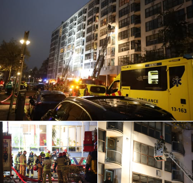 De brand ontstond kort voor 19.00 uur in een woning op de derde etage. De oorzaak is nog onbekend. Kort na het afgaan van het brandalarm verliet een bewoner gehaast zijn woning, maar liet een pan op het vuur staan. Hierdoor ontstond een tweede brand, eveneens op de derde verdieping. De brand verspreidde zich naar meerdere woningen, wat het blussen bemoeilijkte. Er werd een drone ingezet om de situatie in kaart te brengen.