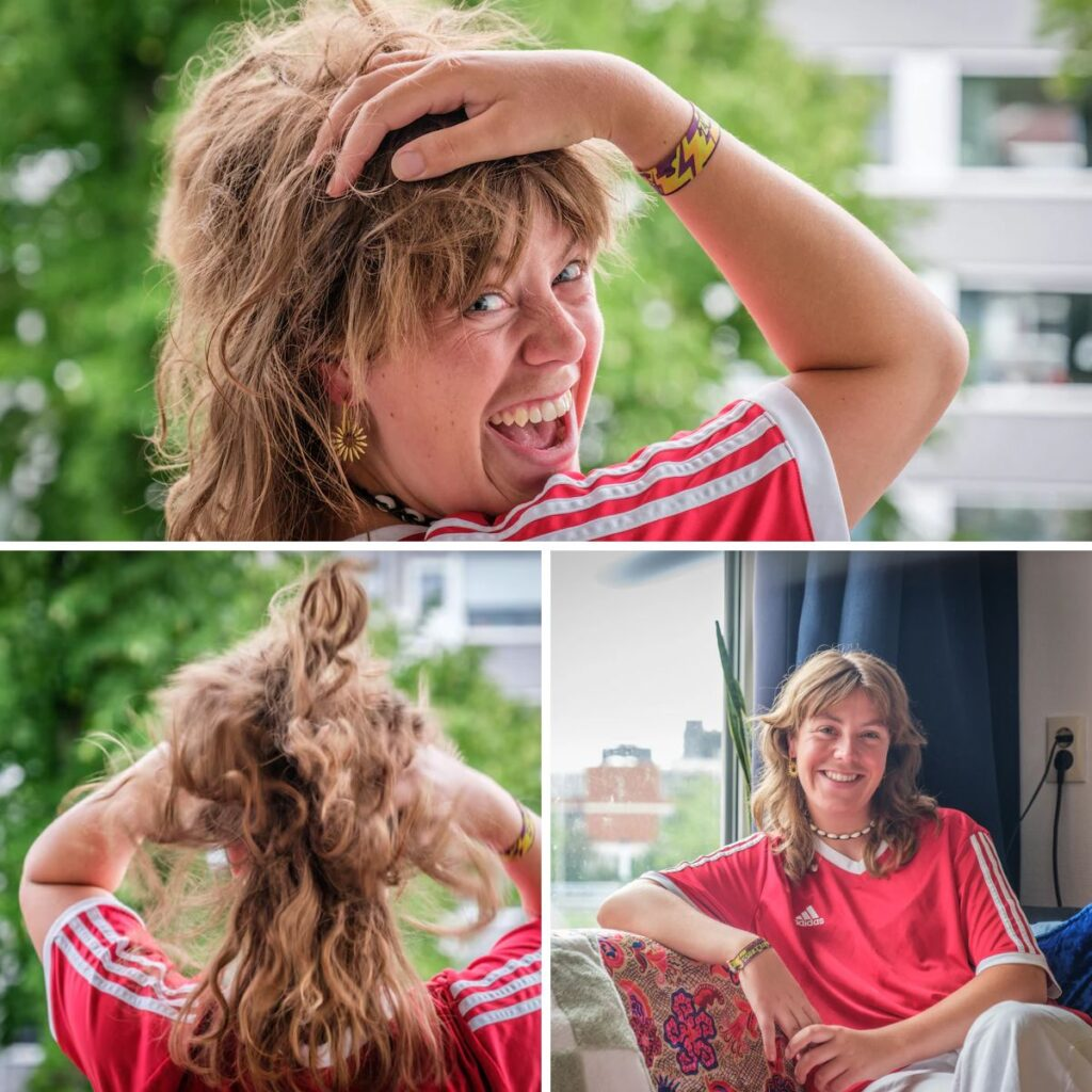 Terug in Utrecht, trof ze weer een kapper van wie de handen brandden om Veerle te wassen. „Ze kon het moeilijk in model brengen. Uiteindelijk heeft ze het toch gedaan, zonder shampoo. Ze moest hard borstelen, maar ik vond het een goede ervaring.”