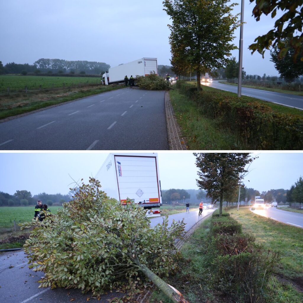 Vrachtwagenchauffeur onder invloed rijdt boom om en belandt in sloot