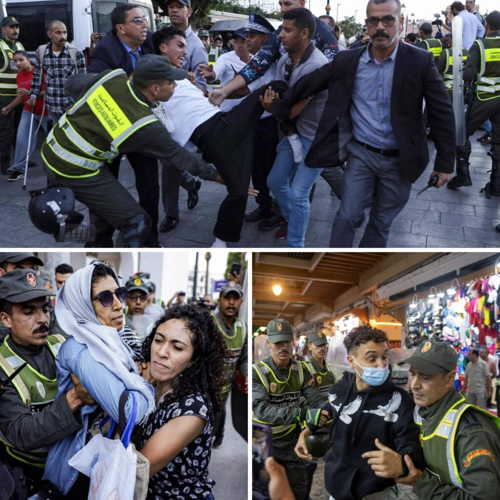 Een betoger uit Tanger vertelt hoe verschillende van zijn vrienden opgepakt werden en in een politiecel belandden. “Ze zaten met vijftig, zestig mensen op elkaar gepakt in een kleine cel. Velen kregen klappen of werden op de grond gegooid en op het lichaam gestampt. Sommige arrestanten werden al voor zware misdaden aangeklaagd en riskeren nu een gevangenisstraf van vijf tot tien jaar.”