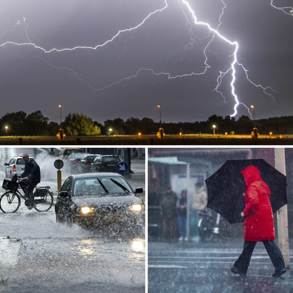Het KNMI schrijft dat de heftige onweersbuien op sommige plaatsen kunnen zorgen voor wateroverlast. Ook kunnen er takken afbreken “door een tijdelijk snel toenemende wind”.